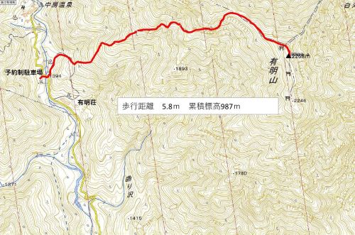 三段の滝8:10⇒有明荘分岐⇒有明山社奥宮11:18⇒有明山12:25