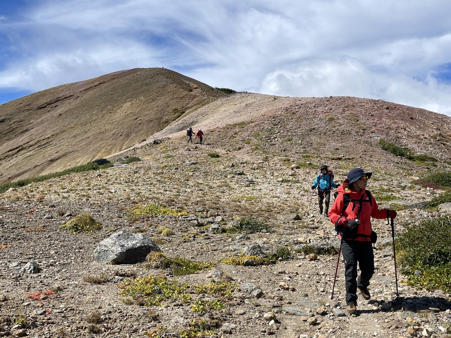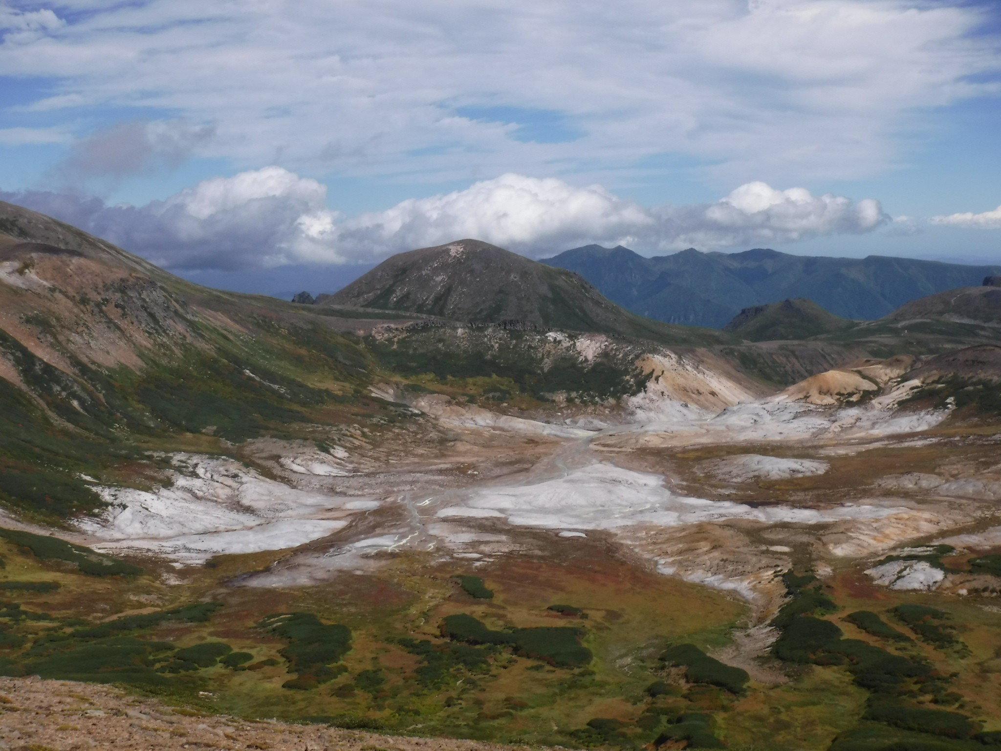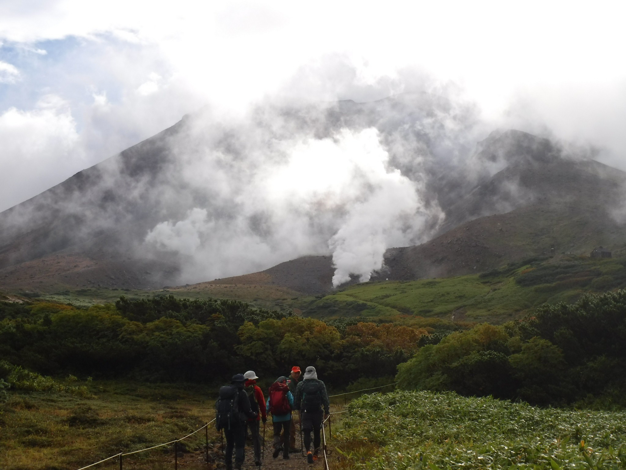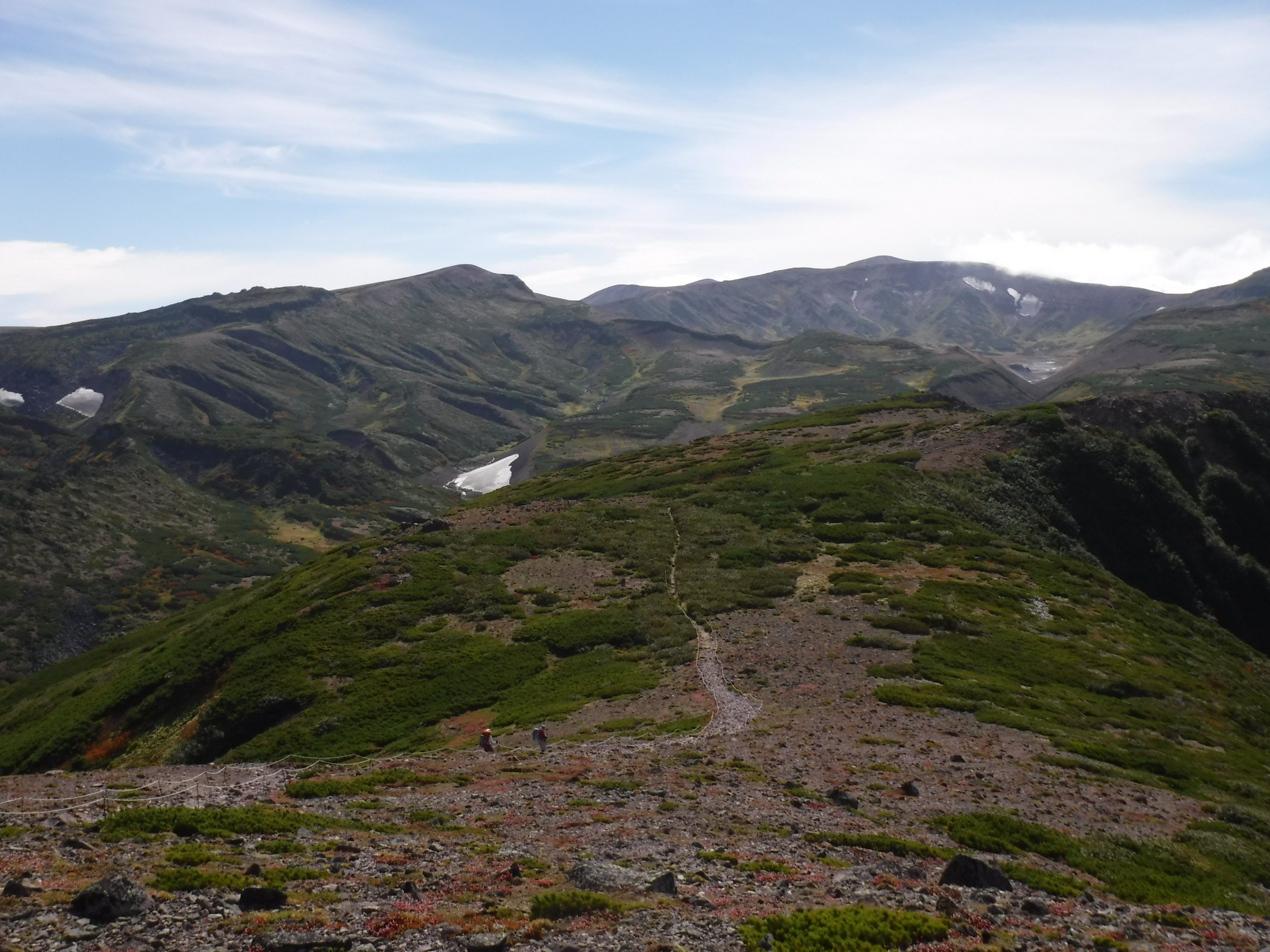 旭岳は山頂では吹き飛ばされそうな暴風。頂上では眺望は有りませんでしたが、30分程下山するとガスがはれて来ました。その後は快晴の中、縦走を楽しむ事が出来ました。