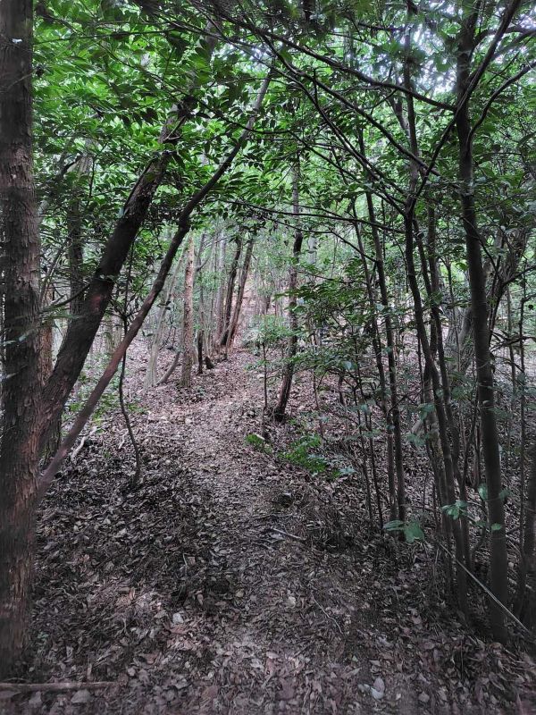 登山道から、脇の山に立ち入らない様、ビニールテープの仕切りが、