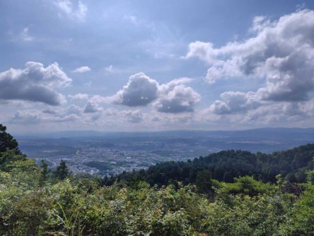 展望台8:40~9:00⇒高社神社9:20⇒根本城跡